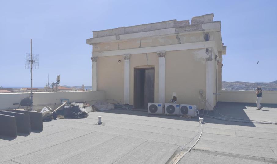 Με αργό ρυθμό προχωρά το έργο της αποκατάστασης των όψεων του Δημαρχιακού Μεγάρου Σύρου – Ερμούπολης