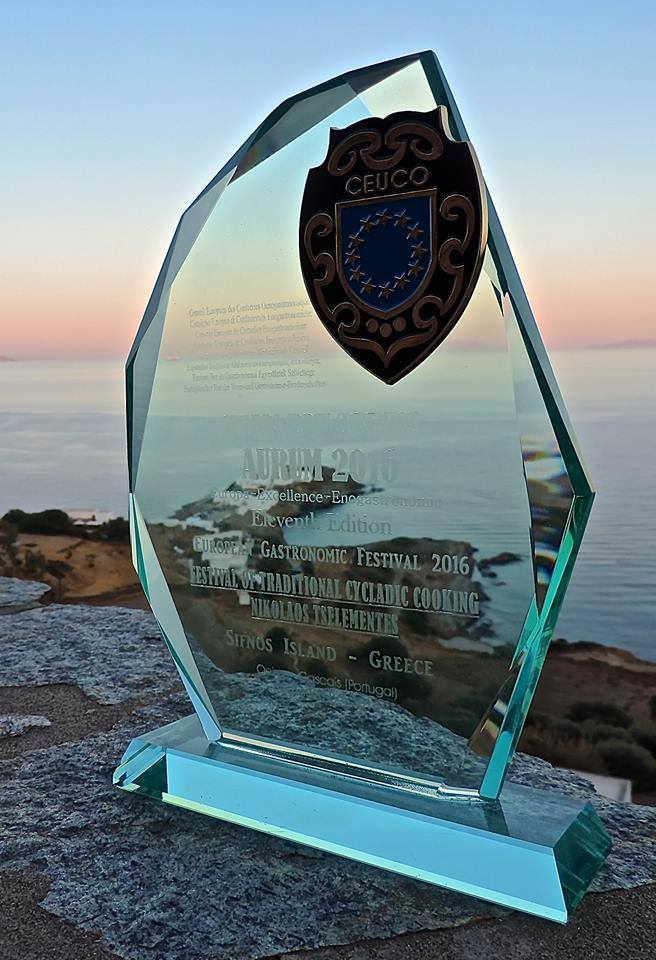 Σημειώνεται ότι το 2016 το Φεστιβάλ της Σίφνου απέσπασε το Βραβείο «European Gastronomic Festival 2016», της CEUCO (Ευρωπαϊκό Συμβούλιο Αδελφοτήτων Γαστρονομίας και Οινολογίας) στο συνέδριό της, που πραγματοποιήθηκε στη Λισσαβόνα.