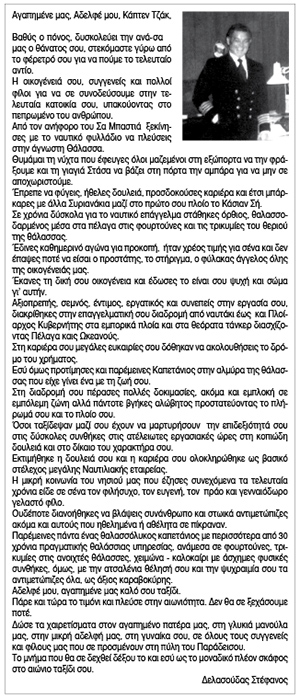 Στην μνήμη του "Κάπτεν Τζάκ" από τον αδελφό του Τετάρτη 12 Οκτωβρίου 2022 - 10:14 Συντάκτης: Ρένα Ρούσσου Κείμενο Βλέπε εικόνα. Αριθμός Φύλλου 5978 Κατηγορία Ευχαριστήριο