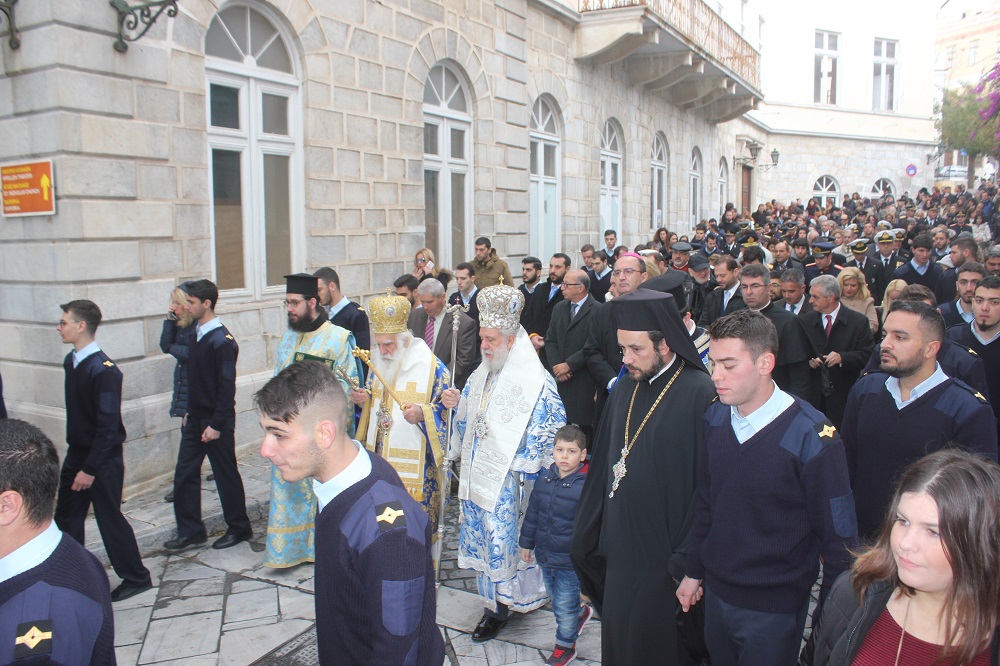 Η λιτανεία που ακολούθησε μετά το πέρας της Θείας Λειτουργίας ξεκίνησε την πορεία της από τον Άγιο Νικόλαο και κατευθύνθηκε στην Πλατεία Μιαούλη, όπου αναπέμφθηκε δέηση υπέρ των ναυτιλομμένων.