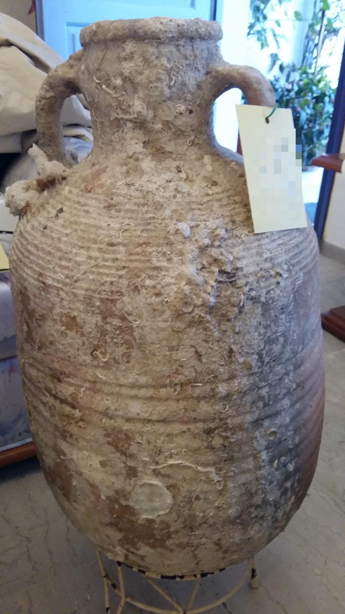 Συγκεκριμένα, κατόπιν αξιοποίησης πληροφοριών, σε νομότυπη έρευνα που διενεργήθηκε σε δύο (02) οικίες ιδιοκτησίας του ανωτέρω, από στελέχη του Γραφείου Ασφάλειας των Λιμενικών Αρχών Νάξου και Ελευσίνας, παρουσία δικαστικού λειτουργού και με τη συνδρομή τοπικού αρχαιολόγου, εντοπίστηκαν συνολικά δώδεκα (12) εμπορικοί αμφορείς και δύο (02) επιτραπέζια αγγεία.