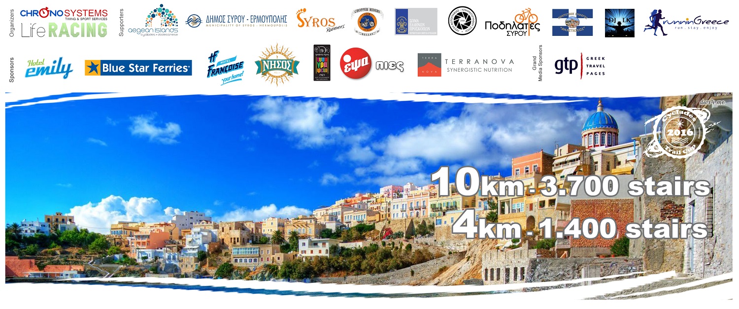 Το Σάββατο 3 Σεπτεμβρίου 2016, στις 16:50 στην Πλατεία Μιαούλη της Ερμούπολης θα δοθεί η εκκίνηση του 2ου αγώνα πόλης: Syros City Trail! Ο παιδικός αγώνας καλύπτει μια απόσταση 800μ και συναντά μόλις 10 σκαλοπάτια.