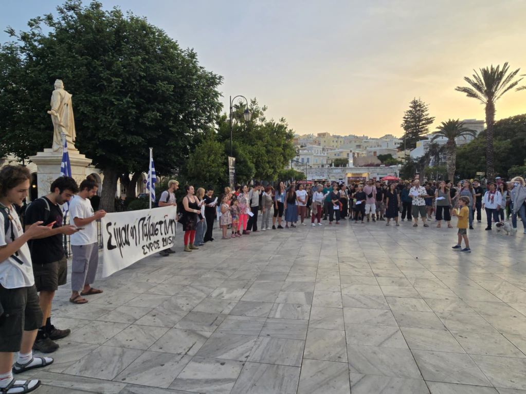 Συγκέντρωση αλληλεγγύης στον Παλαιστινιακό λαό, πραγματοποιήθηκε σήμερα το απόγευμα στη πλατεία Μιαούλη και η οποία κορυφώθηκε με πορεία στο κέντρο της Ερμούπολης.