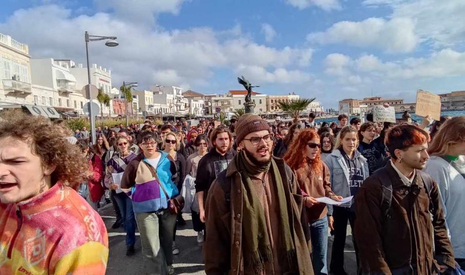 Στην πορεία που λαμβάνει χώρα αυτή τη στιγμή (13.00) με κατεύθυνση την πλατεία Ηρώων, οι φοιτητές πλαισιώνονται και από πολίτες του νησιού καθώς και από ορισμένους δημοτικούς συμβούλους της ελάσσονος μειοψηφίας.