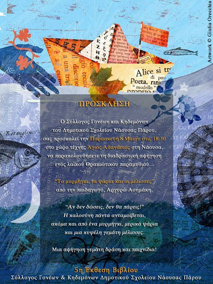 Ο Σύλλογος Γονέων & Κηδεμόνων του Δημοτικού Σχολείου Νάουσας Πάρου προσκαλεί το κοινό της Πάρου στις τελευταίες εκδηλώσεις της 5ης Έκθεσης Βιβλίου.