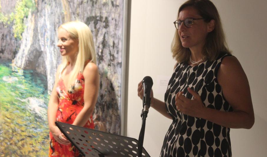 Στον χαιρετισμό της, η Συριανής καταγωγής κ. Πουρνάρα συνεχάρη τον Δήμο Σύρου – Ερμούπολης για τις αξιοθαύμαστες πρωτοβουλίες του στον τομέα του πολιτισμού, που αναδεικνύουν ακόμη περισσότερο την ποιότητα, τα ήθη και την αισθητική του τόπου. Σημείωσε μάλιστα πως, «δεν είναι τυχαίο ότι ο Αντώνης Κομνηνός ήρθε στη Σύρο, ανακάλυψε ξανά τη ρίζα που τον ενώνει με το νησί, έδωσε χρήματα για να ξαναφτιαχτεί η Πινακοθήκη Κυκλάδων και έχει γίνει ένας σταθερός υποστηρικτής ποιοτικών εκθέσεων, ενώ φιλοδοξεί να προσελκύσει κι άλλους ανθρώπους, οι οποίοι θα συμπαρασταθούν σε αυτό που προσπαθεί να κάνει ο Δήμος». Στη συνέχεια, εστίασε στους τρεις καλλιτέχνες, οι οποίοι έχοντας πάρει τις ίδιες αξίες και τα ίδια διδάγματα από την φοίτησή τους στην Ανωτάτη Σχολή Καλών Τεχνών, ένωσαν τις δυνάμεις τους για μια κοινή έκθεση στη Σύρο, διαθέτοντας αυτό το είδος της ευγενούς άμιλλας που χρειάζεται η ζωγραφική. «Αν υπάρχει κάτι αξιοθαύμαστο, πέρα από την ποιότητα της τέχνης τους είναι η ποιότητα του χαρακτήρα τους και της φιλίας τους».