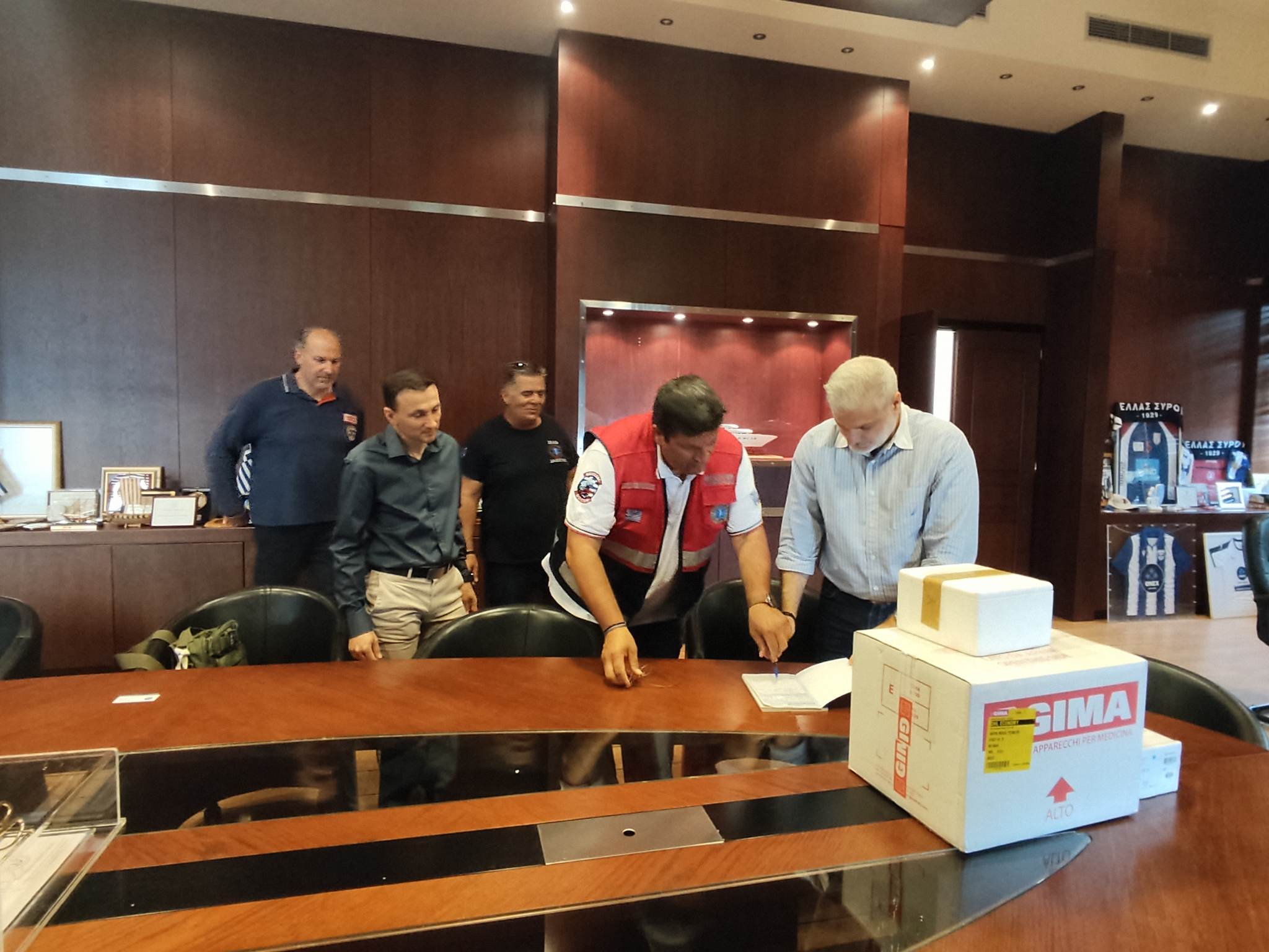 Ενισχύεται με σημαντικό ιατρικό εξοπλισμό στο κομμάτι των αεροδιακομιδών το ΕΚΑΒ Σύρου, μέσω δωρεάς από το Νεώριο, στο πλαίσιο της εταιρικής κοινωνικής ευθύνης που αναπτύσσει ο όμιλος ONEX.