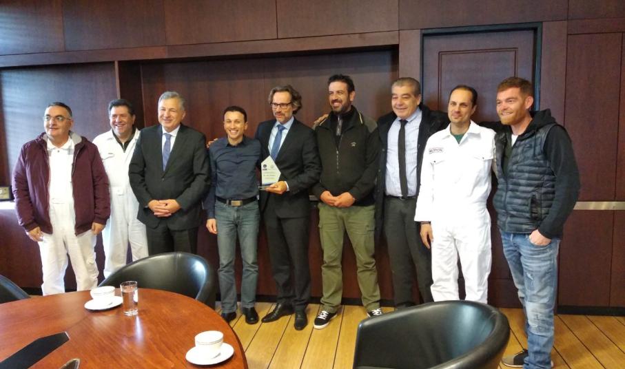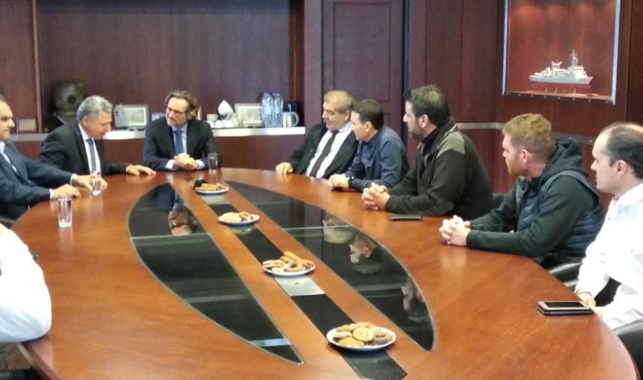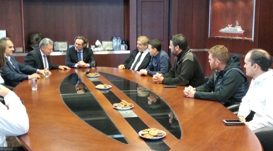 Πρέπει να σημειωθεί, πως, στο Νεώριο βρισκόταν και ο κ. Σαββίδης, εργολάβος που στήριξε την ενδιάμεση λειτουργία του ναυπηγείου. Τα δύο πρόσωπα καλωσόρισε αρχικά ο πρόεδρος του Εργοστασιακού, Αντώνης Χατζαντώνης.