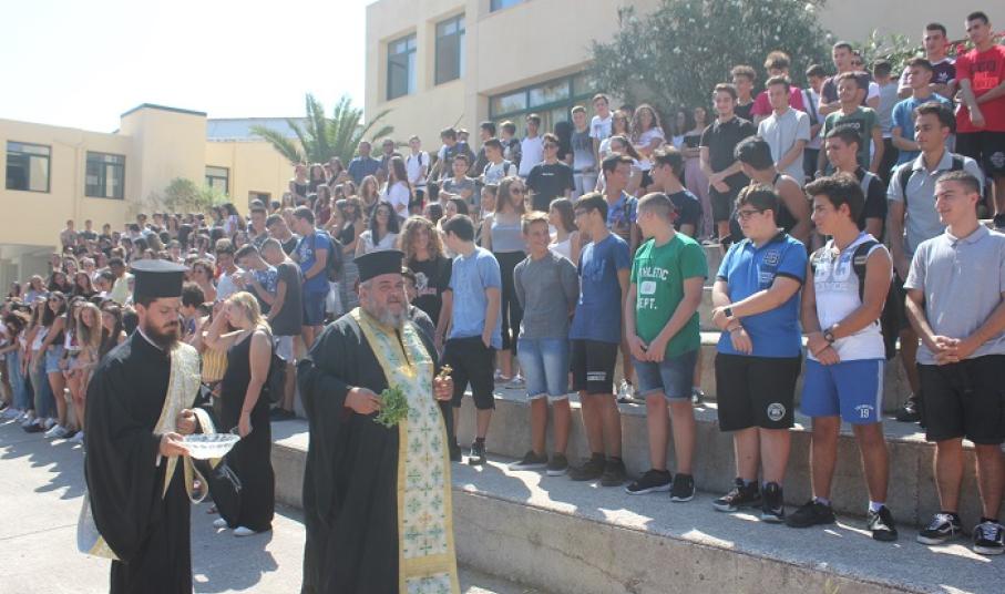 Παλαιούς και νέους μαθητές υποδέχτηκε σήμερα το πρωί η οικογένεια της Δευτεροβάθμιας Εκπαίδευσης στη Σύρο, κατά τον καθιερωμένο αγιασμό για την έναρξη της νέας σχολικής χρονιάς στα συγκροτήματα των Γυμνασίων και των Λυκείων στη Σύρο.
