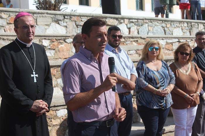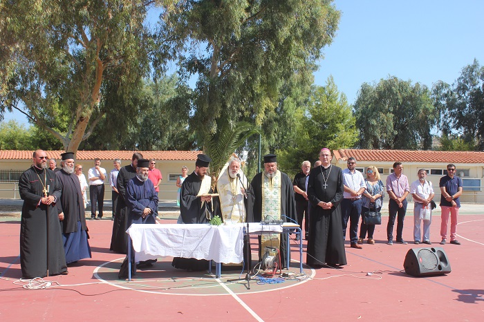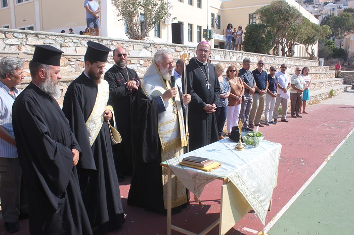 Τον αγιασμό τέλεσε ο Σεβασμιώτατος Μητροπολίτης Σύρου κ. Δωρόθεος Β’, πλαισιωμένος από κληρικούς της Ιεράς Μητρόπολης, ενώ τις ευχές του απηύθυνε στους μαθητές και ο Καθολικός Επίσκοπος Σύρου Σεβ. π. Πέτρος Στεφάνου.