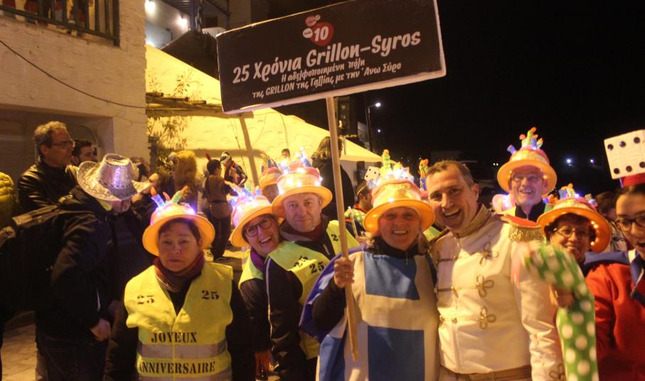 Ερημίτες, κλόουν, χορευτές και χορεύτριες του Μου(ρ)λέν Ρουζ, μαργαρίτες, Μικροί Πρίγκιπες, ληστές, ναυτάκια και τροτέζες, αστέρια, οι θεοί του Ολύμπου και πολλές ακόμη προσωπικότητες έκαναν δυναμική εμφάνιση, χόρεψαν, τραγούδησαν, κυλίστηκαν στα σκαλοπάτια και γοήτευσαν τα πλήθη με το πάθος τους, τη χαρά τους και φυσικά την αστείρευτη δημιουργικότητά τους. Θερμό χειροκρότημα απέσπασε, μεταξύ άλλων, η αδελφοποιημένη με τον τ. Δήμο Άνω Σύρου πόλη Grillon της Γαλλίας, προς τιμήν της οποίας θα πραγματοποιηθεί σήμερα το πρωί χορευτική παράσταση στο Θέατρο «Απόλλων».
