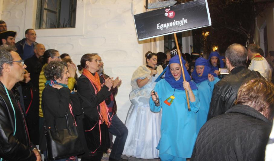 Καθοριστικό ρόλο στην επίτευξη αυτού του σκοπού έπαιξαν και φέτος τα μέλη των καρναβαλικών ομάδων, που φόρεσαν τις στολές τους και λίγο μετά τις οχτώ παρέλασαν στα γραφικά σοκάκια, ξεσηκώνοντας τους πολυάριθμους θεατές που είχαν πιάσει από νωρίς στασίδι για να πάρουν μία γεύση από τη μεγάλη γιορτή που θα ακολουθήσει σήμερα το απόγευμα στο κέντρο της Ερμούπολης.