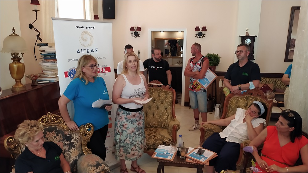 Η κα Λούβαρη, αφού ολοκλήρωσε την ομιλία της, κάλεσε έναν – έναν τους εκπροσώπους των χορευτικών ομάδων να απευθύνουν έναν σύντομο χαιρετισμό. Όλοι οι συμμετέχοντες εξέφρασαν τη χαρά τους που βρίσκονται στη Σύρο και που θα λάβουν μέρος στο “Συριανοπατώ” και ευχαρίστησαν τους διοργανωτές για την πρόσκληση και τη φιλοξενία.