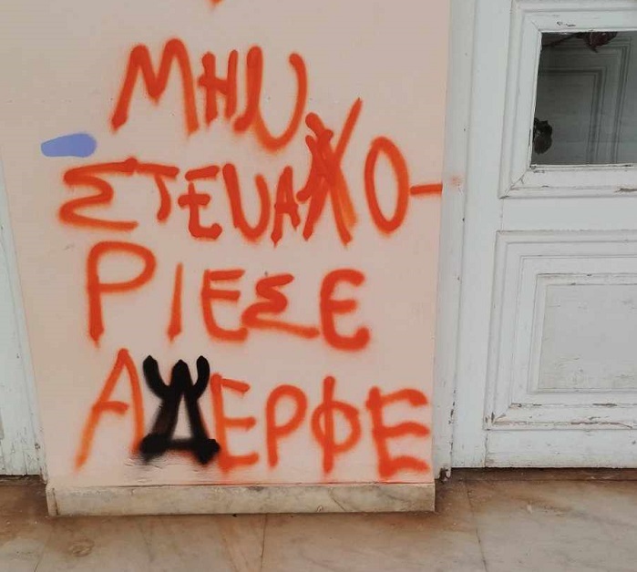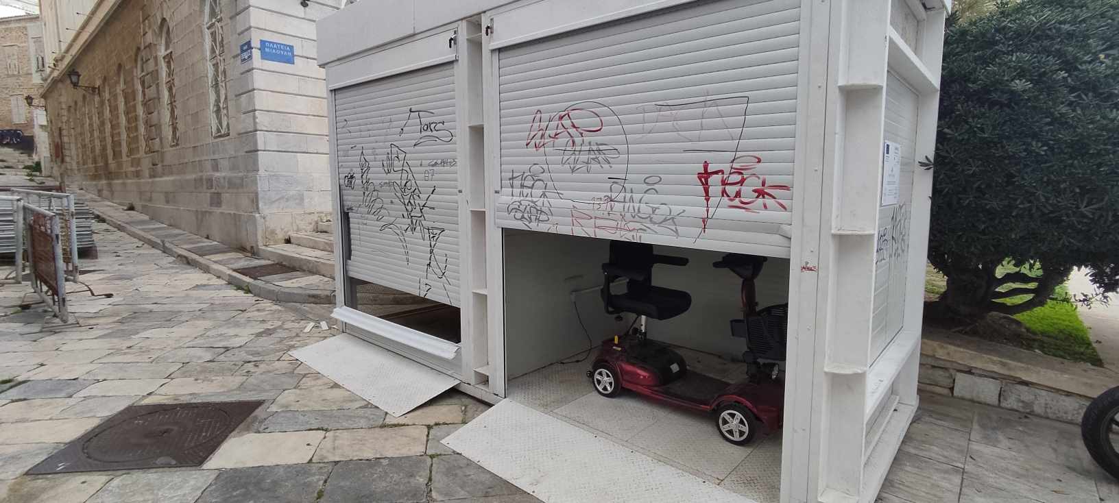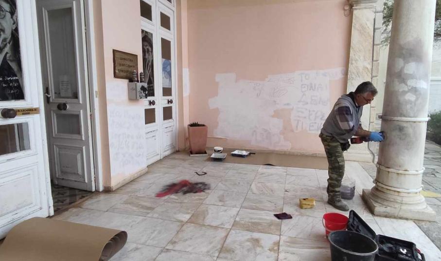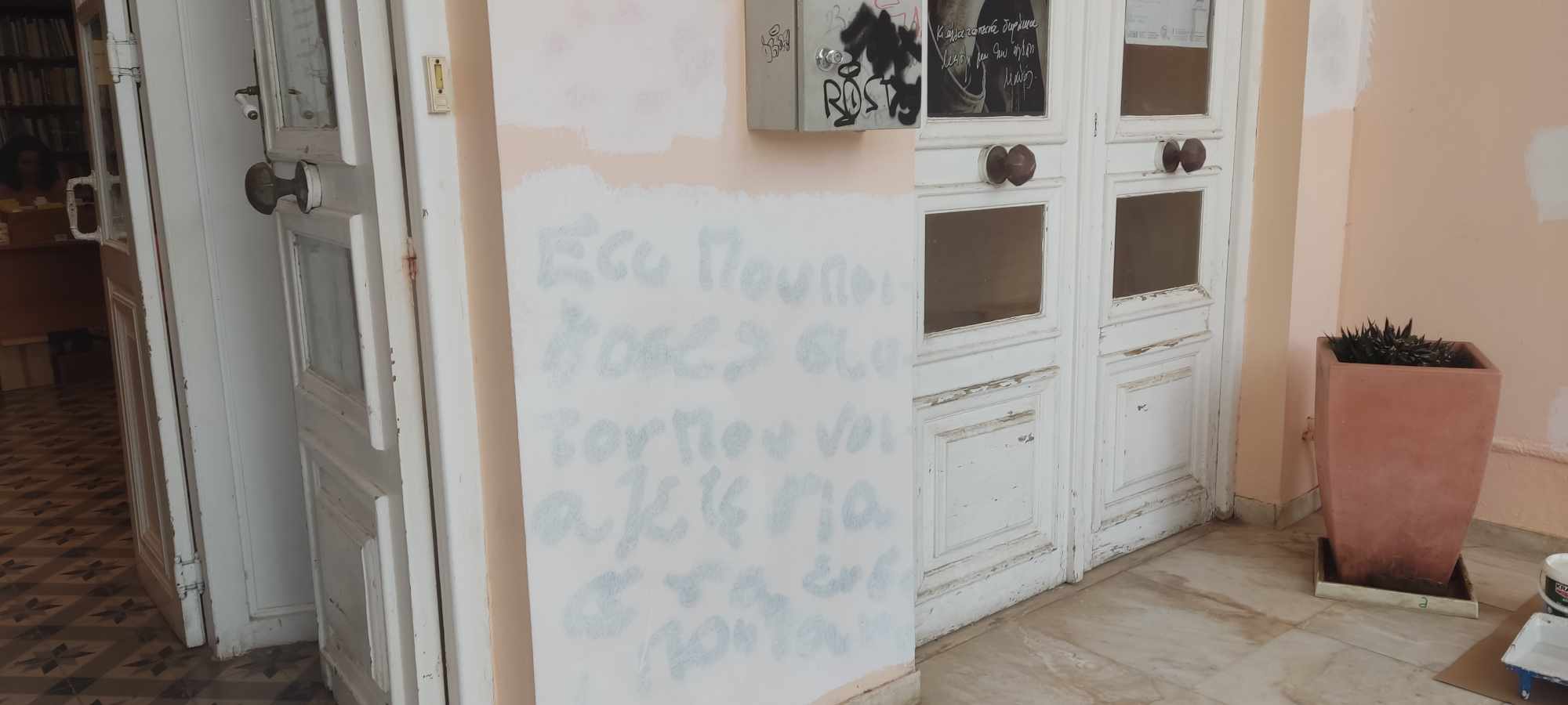 Όλο το τελευταίο διάστημα είναι σε έξαρση οι βανδαλισμοί και οι φθορές με σπρέι και μπογιές στο κέντρο της Ερμούπολης, με μεγάλα “θύματα” να είναι τα ιστορικής και αρχιτεκτονικής αξίας κτήρια, τόσο δημόσια, όσο και ιδιωτικά. Μετά από τις φθορές στο Δημαρχιακό Μέγαρο, στο Πνευματικό Κέντρο, στην Καθολική εκκλησία της Ερμούπολης, στα κουβούκλια των ηλεκτρικών σκούτερ και στη μαρμάρινη εξέδρα της μουσικής στην πλατεία Μιαούλη, πήρε – δυστυχώς – σειρά, η Δημοτική Βιβλιοθήκη.