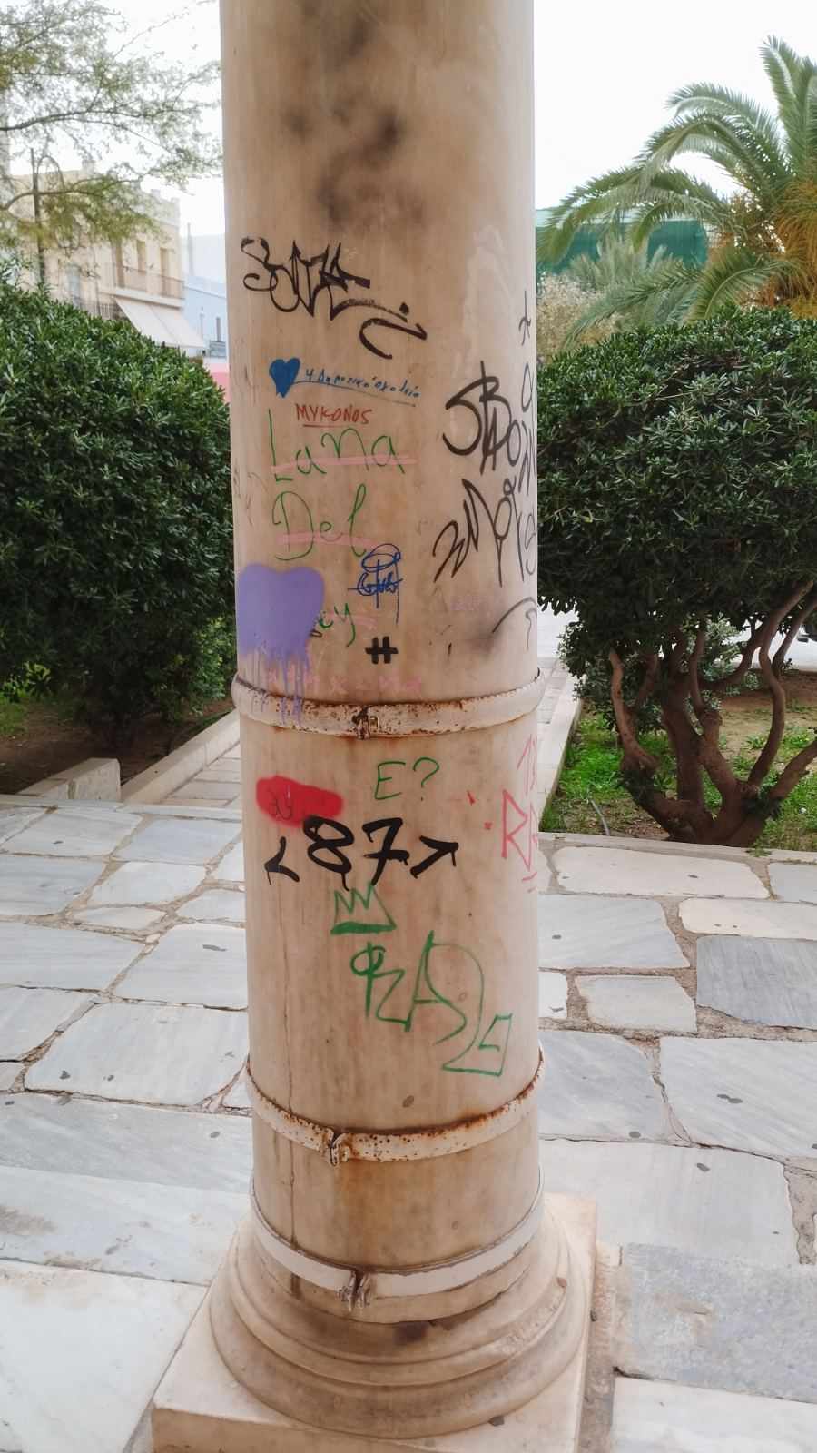 Ανήμερα των Χριστουγέννων, τρεις ανήλικοι ηλικίας 11 – 12 ετών από τη Σύρο, πιάστηκαν επ΄ αυτοφώρω από αστυνομικούς γιατί έβαφαν με σπρέι όλη την πρόσοψη της Δημοτικής Βιβλιοθήκης, όπως επίσης και τις μαρμάρινες κολώνες στην είσοδό της.