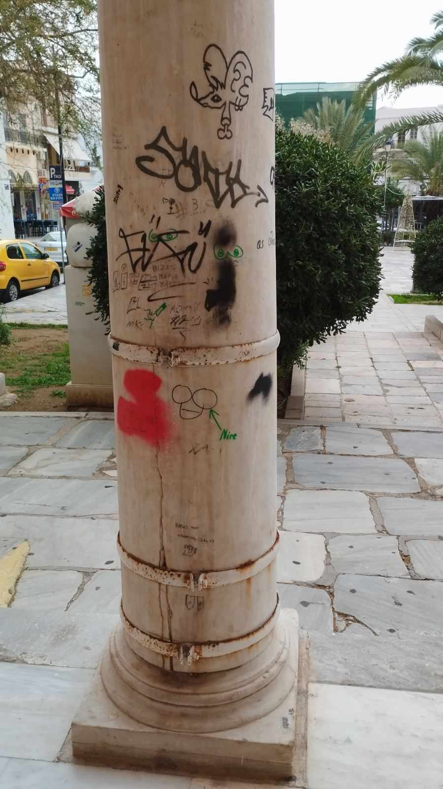 Σε συνέχεια των ανωτέρω και των σχετικών προτάσεων, ερωτηθείς για το αν συμφωνεί στην ίδια κατεύθυνση, τόνισε: “Προσωπικά ως άνθρωπος δεν είμαι υπέρ της καταστολής, αλλά υπέρ της καλής συνεννόησης και του σεβασμού και κυρίως προς τα μνημεία που έχουμε και πέριξ της πλατείας. Όμως, βλέποντας όλη αυτή την κατάσταση, προβληματίζομαι. Αν κάνουμε αποκατάσταση στην εξέδρα της μουσικής, θα πάνε πάλι να βάψουν τα μάρμαρα; Το ίδιο και αν φτιάξουμε τις όψεις του Δημαρχιακού Μεγάρου ή με το Πνευματικό Κέντρο;”.