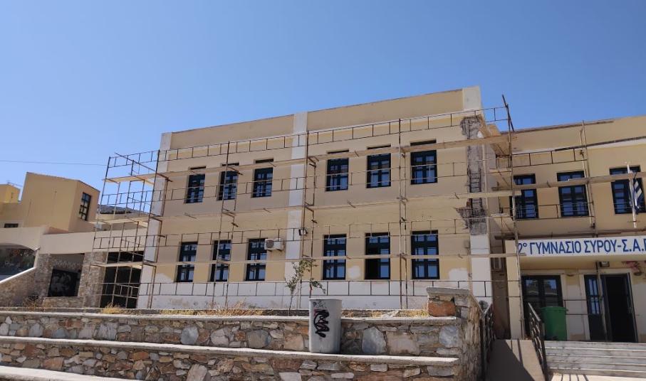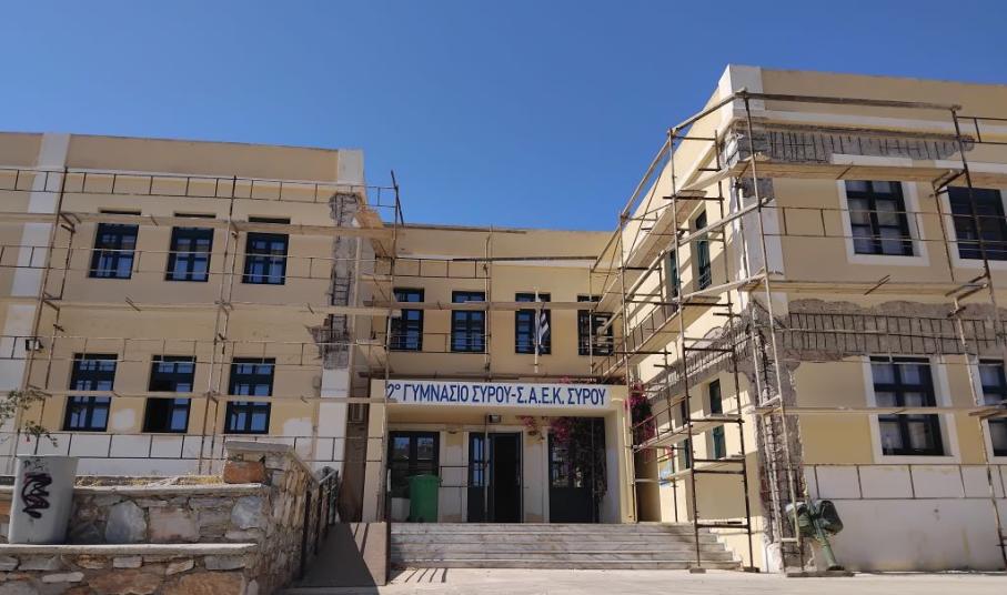 Οι απαραίτητες επισκευές στο 2ο Γυμνάσιο Σύρου, ώστε αυτό να είναι κτηριακά ασφαλές για τους μαθητές και τους εκπαιδευτικούς με την έναρξη της νέας σχολικής χρονιάς, δρομολογήθηκαν από τη Δημοτική Αρχή, καθώς μετά την υπογραφή της σύμβασης ανάμεσα στον Δήμο με τον εργολάβο, τον περασμένο Απρίλιο, τοποθετήθηκαν την Τετάρτη το μεσημέρι και οι απαραίτητες σκαλωσιές, προκειμένου το έργο, το οποίο έχει χρονικό ορίζοντα ολοκλήρωσης τους 12 μήνες, να τρέξει όσο γίνεται πιο γρήγορα κατά τη διάρκεια της καλοκαιρινής περιόδου.