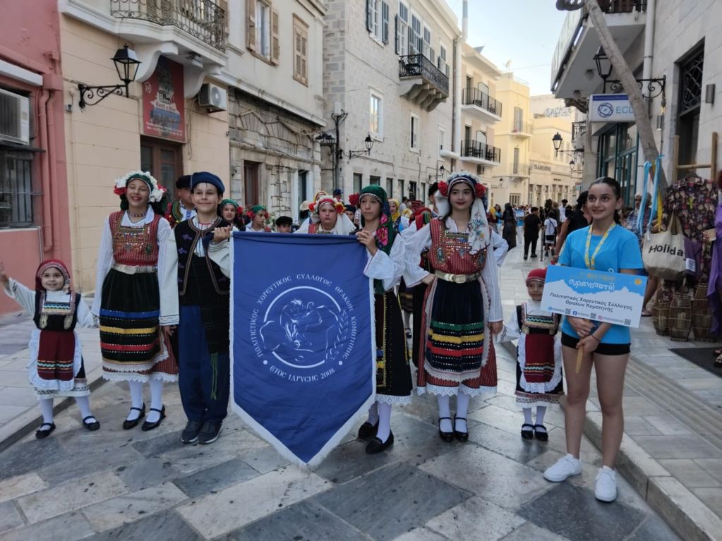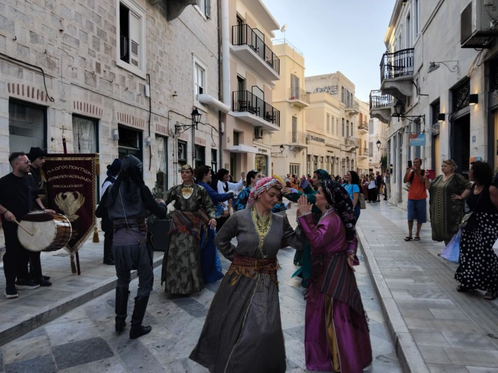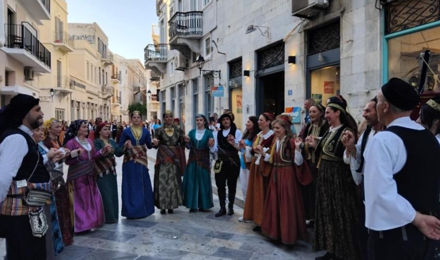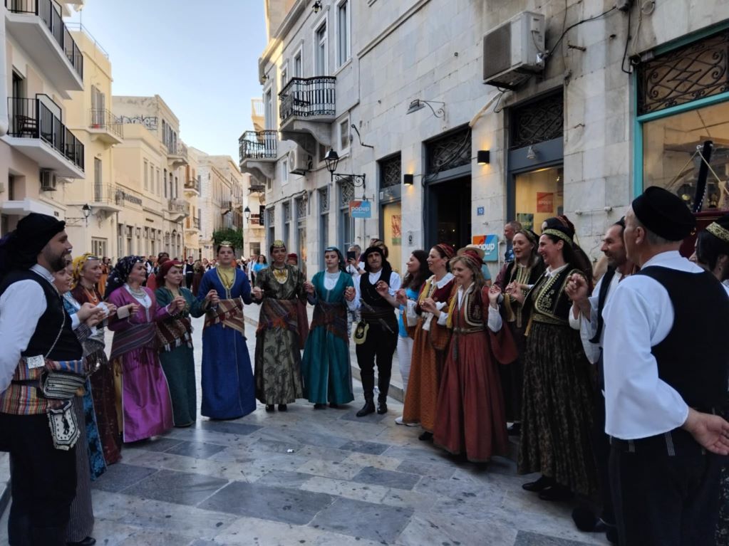 Χθες το μεσημέρι έγινε η επίσημη παρουσίαση των 26 ομάδων που συμμετέχουν από όλη την Ελλάδα, αλλά και την Κύπρο, ενώ το απόγευμα έλαβε χώρα η μεγάλη παρέλαση στην παραλία της Ερμούπολης και ακολούθως η πλατεία Μιαούλη "πλημμύρησε" με φορεσιές, χορούς και τραγούδια της Ελληνικής παράδοσης.
