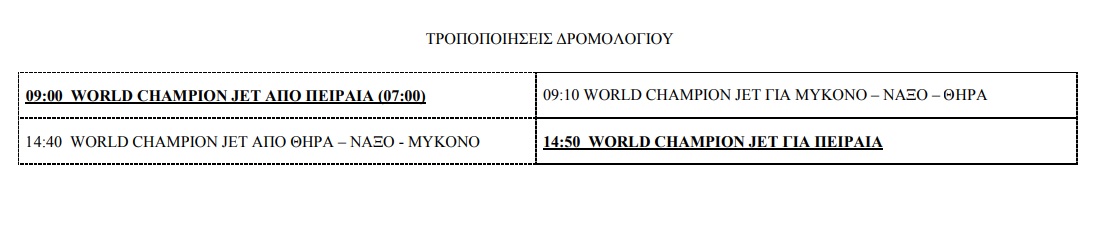 Τροποποιήσεις δρομολογίων World Champion Jet Τετάρτη 29 Μαΐου 2019 - 12:46 Από σήμερα 29-05-2019 τα δρομολόγια του Ε/Γ - Ο/Γ - Τ/Χ WORLD CHAMPION JET τροποποιούνται σύμφωνα με συνημμένο πίνακα: Διαφήμιση Διαφήμιση Διαφήμιση #Κοινωνία #World Champion Jet #τροποποιήσεις δρομολογίων