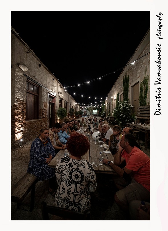 Αν και θα μπορούσαν να σημειωθούν πολλά ακόμη, θα μείνω στο κλείσιμο της παράστασης, μια εξαιρετική εκδοχή υλοποίησης του ζητούμενου κάθε τέτοιας εμπειρίας, που οι μουσειολόγοι-θεατροπαιδαγωγοί-μουσειοπαιδαγωγοί θα αποκαλούσαν «μουσειακό θέατρο». Μετά το τέλος της παράστασης, οι συντελεστές προσκαλούν το κοινό σε μια συνάντηση- συζήτηση στο τραπέζι της αυλής. Χωρίς να υπονομεύω τη σημασία της παράστασης/δράσης καθαυτής, το κρύο νεράκι, το λευκό δροσερό κρασί και η συζήτηση μεταξύ των επισκεπτών-θεατών, πραγματικά τη νοηματοδοτούν με έναν εξαιρετικό τρόπο.