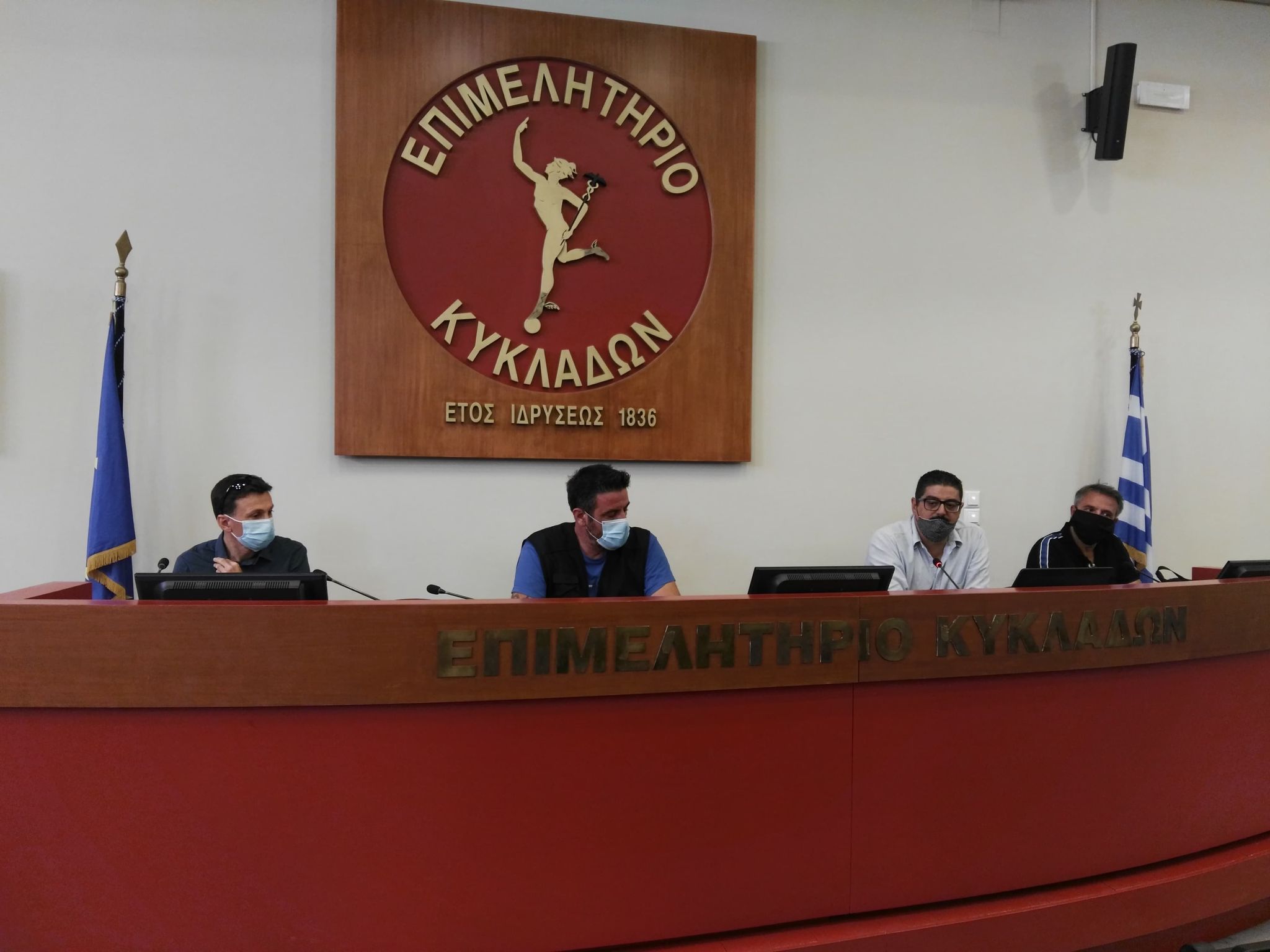 Τη συνάντηση παρακολούθησε και ο πρόεδρος του Επιμελητηρίου Κυκλάδων, Γιάννης Ρούσσος, ο οποίος τοποθετήθηκε λίγο πριν την ολοκλήρωσή της, σημειώνοντας πως το Νεώριο με την ΟΝΕΧ έχει πραγματοποιήσει ήδη κάποια βήματα εξέλιξης, τα οποία καλό είναι να γνωστοποιούνται προς ενημέρωση γενικά της τοπικής κοινωνίας.