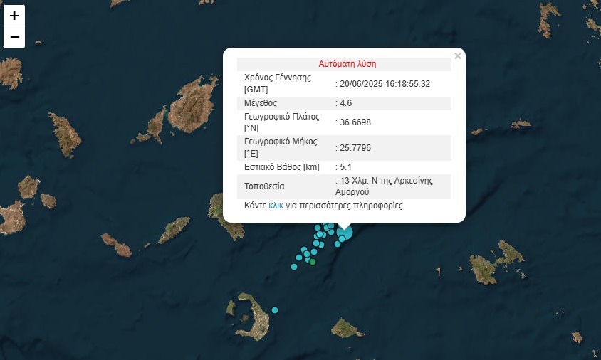 Σεισμική δόνηση 4,6 βαθμών της κλίμακας Ρίχτερ καταγράφηκε το απόγευμα της Παρασκευής, 13 χιλιόμετρα νότια της Αρκεσίνης Αμοργού, σύμφωνα με το Γεωδυν...