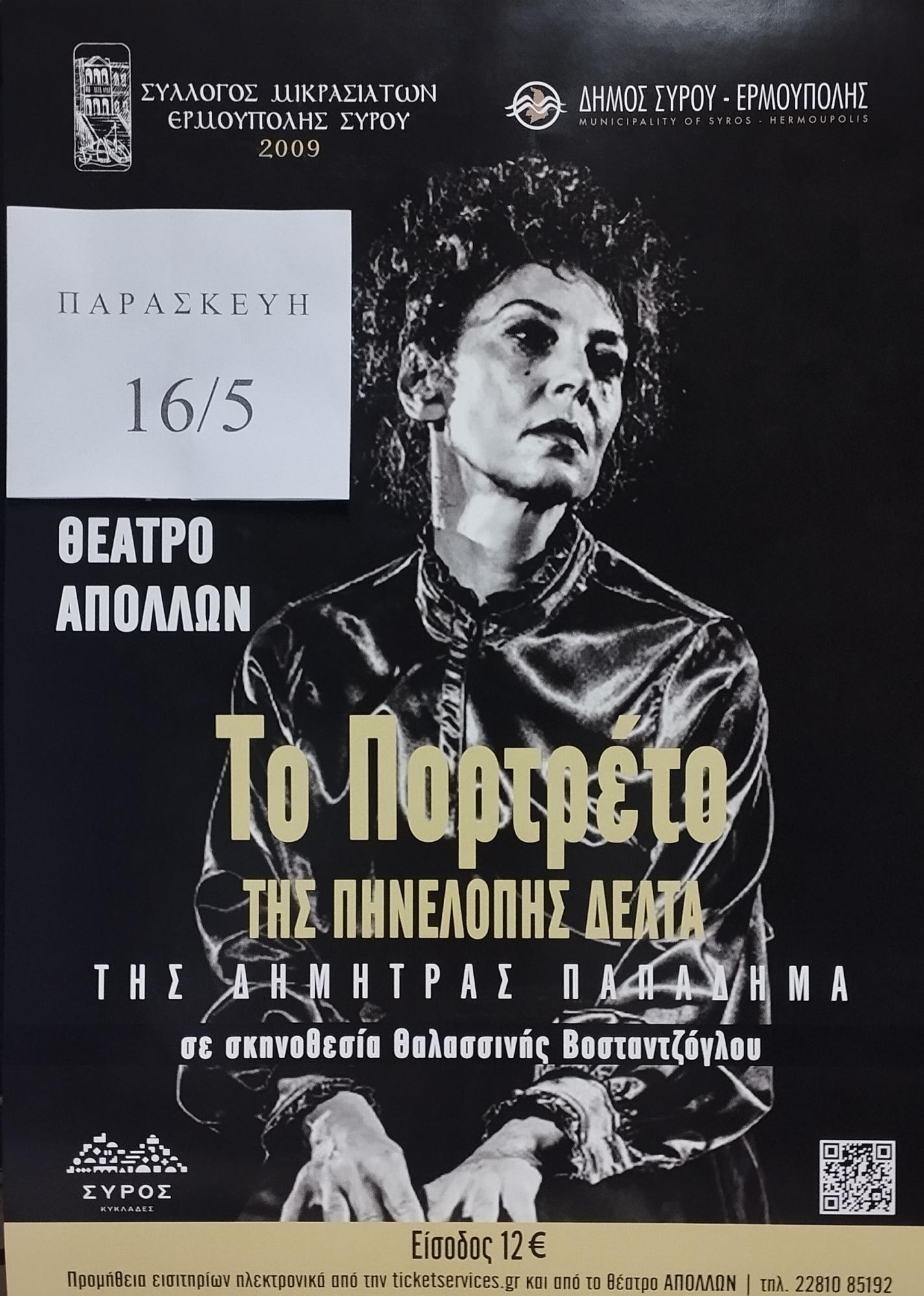 Με αφορμή τη συμπλήρωση 150 χρόνων από τη γέννηση της Πηνελόπης Δέλτα ,ο Σύλλογος Μικρασιατών Ερμούπολης Σύρου ,φιλοξενεί τη παράσταση Το Πορτρέτο της...