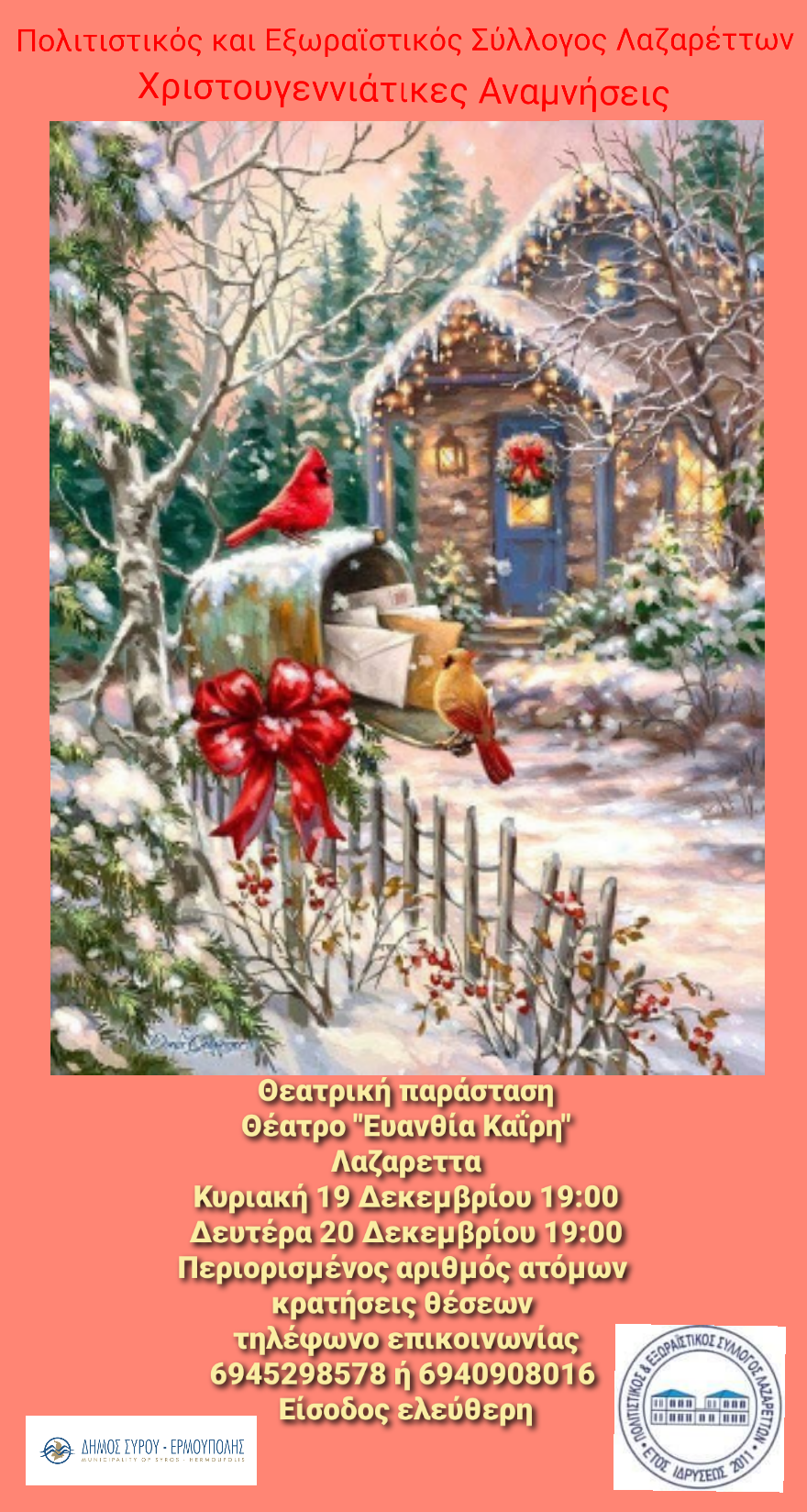 Στο πλαίσιο των εορταστικών εκδηλώσεων του Δήμου Σύρου - Ερμούπολης, η Εταιρεία Θεάτρου «Ο Θίασος» παρουσιάζει, με ελεύθερη είσοδο για το κοινό, την π...