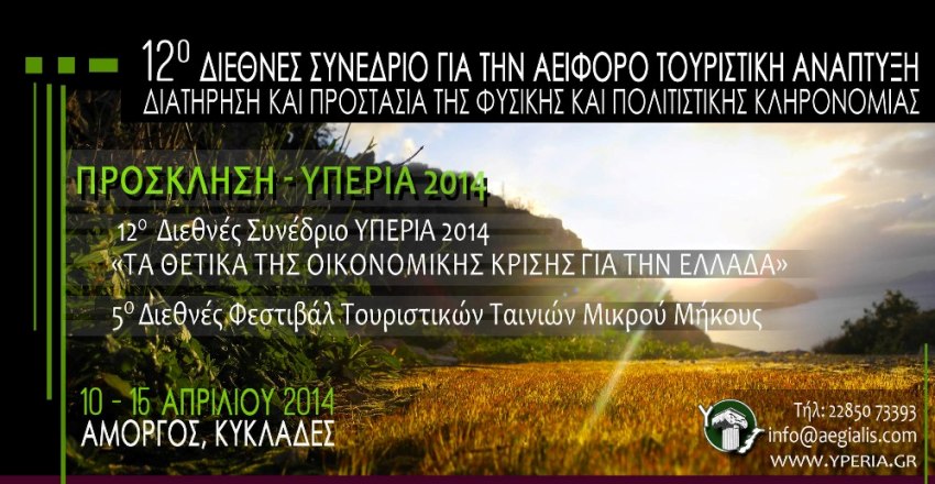 Το Διεθνές Συνέδριο ΥΠΕΡΙΑ Αειφόρου Τουριστικής Ανάπτυξης, Διατήρησης & Προστασίας της Φυσικής & Πολιτιστικής Κληρονομιάς διοργανώνουν για 12η συνεχόμ...