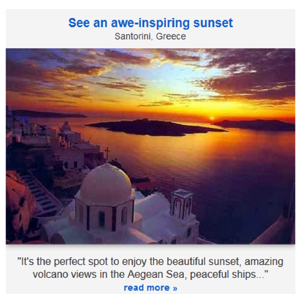 Η μαγευτική θέα του ηλιοβασιλέματος στην Καλντέρα της Σαντορίνης περιλαμβάνεται στη λίστα με τις δώδεκα ταξιδιωτικές εμπειρίες ζωής που ανέδειξαν οι χ...