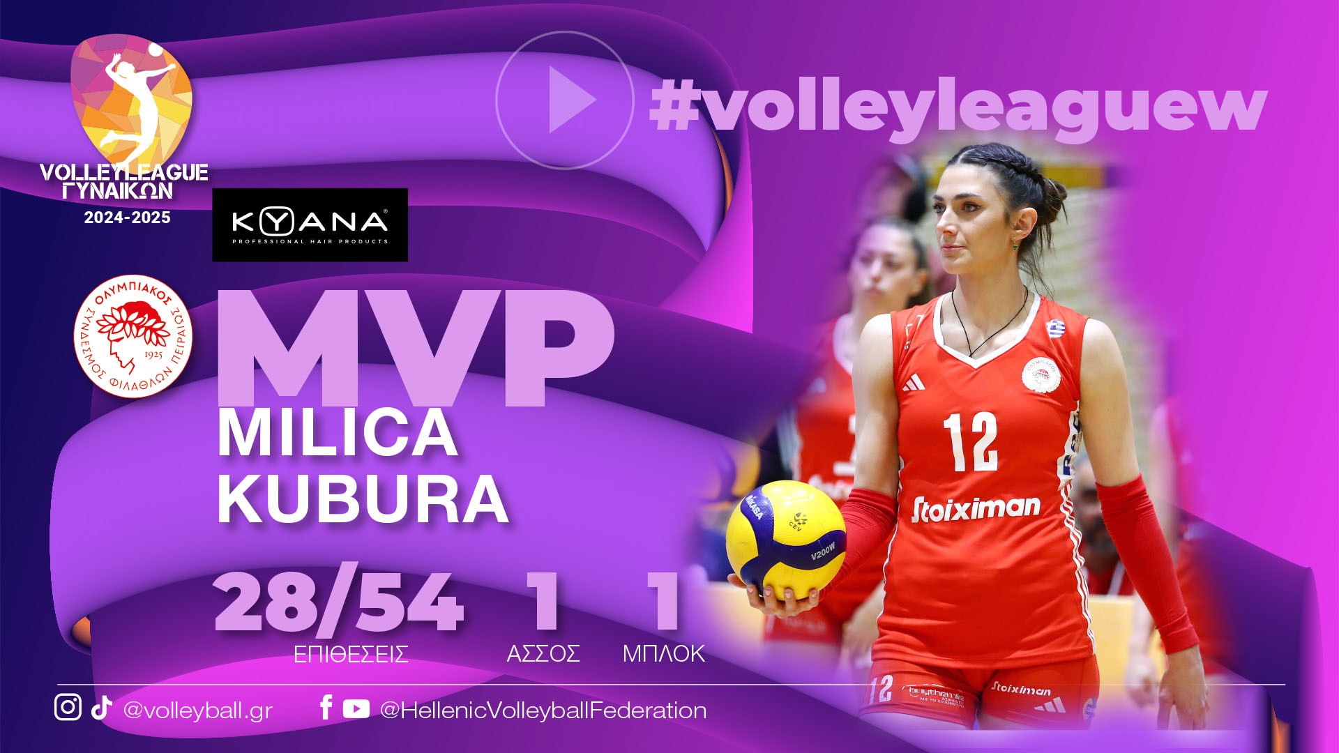 Η Μίλιτσα Κούμπουρα του Ολυμπιακού είναι η MVP του πρώτου τελικού της Volley League Γυναικών. Η Σέρβα διαγώνια πέτυχε 30 πόντους στη νίκη με 3-0 σε...