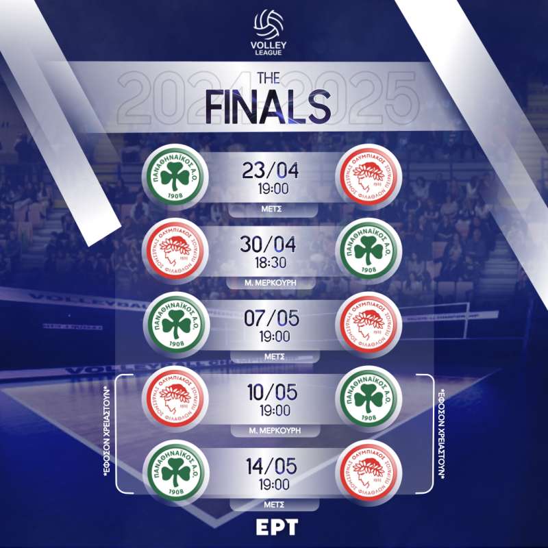 Ολυμπιακός και Παναθηναϊκός θα διεκδικήσουν το πρωτάθλημα της Volley League για την αγωνιστική περίοδο 2024-25. Η σειρά θα ολοκληρωθεί όταν μία ομάδα ...