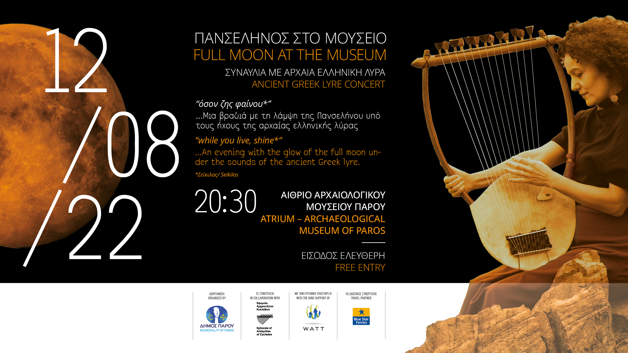 Συναυλία με λύρα στο Αρχαιολογικό μουσείο Πάρου για την πανσέληνο. Δείτε παρακάτω το πρόγραμμα