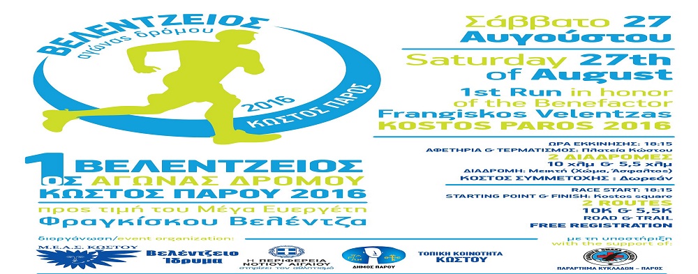 Ο ΜΕΑΣ Κώστου, το Βελέντζειο Ίδρυμα, η Περιφέρεια Νοτίου Αιγαίου, Ο Δήμος Πάρου και η Τοπική Κοινότητα Κώστου, διοργανώνουν τον 1ο Βελέντζειο Αγώνα Δρ...