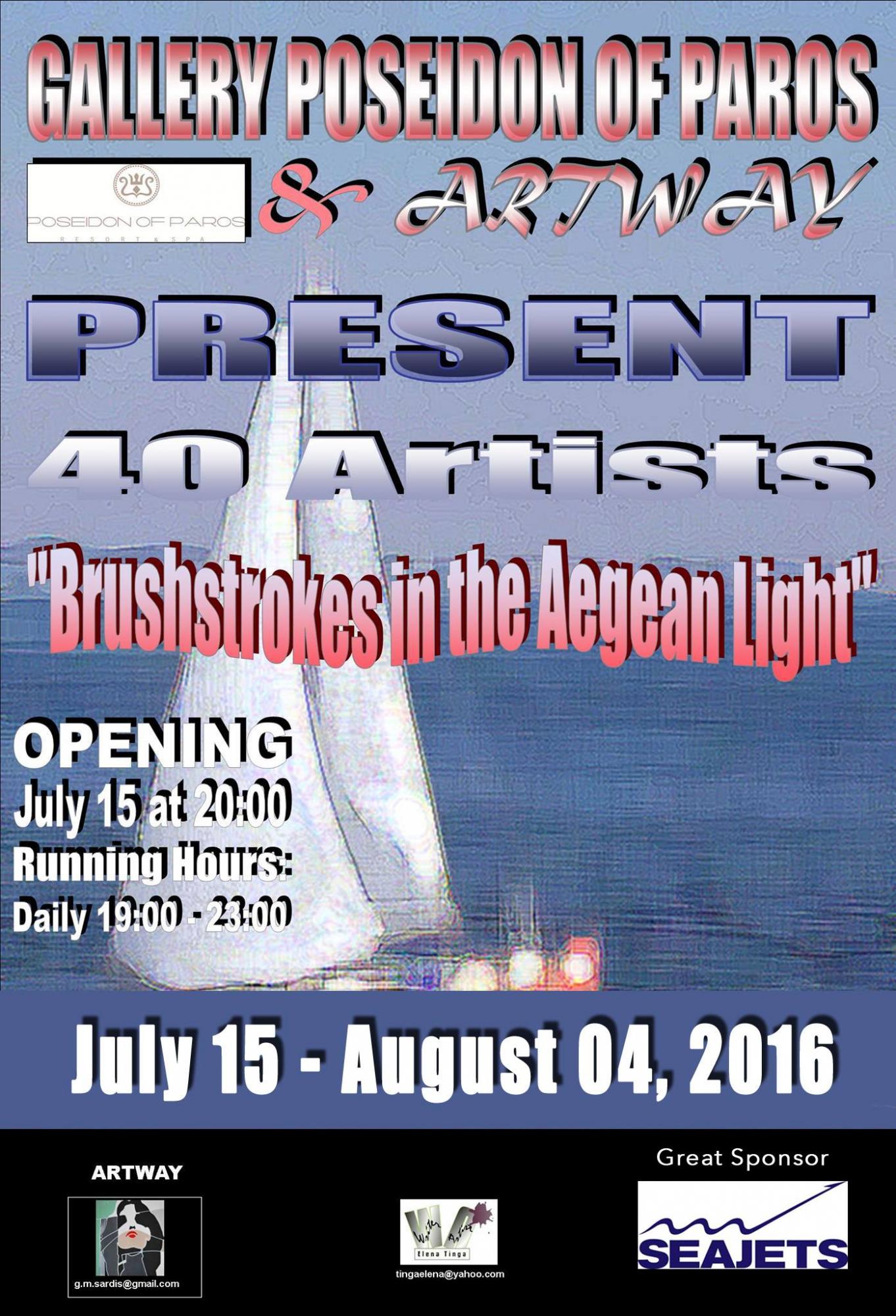 Σε μια ενδιαφέρουσα εικαστική συνομιλία με θέμα «Πινελιές στο Αιγαίο» προσκαλεί το κοινό της Πάρου από 15 Ιουλίου έως 4 Αυγούστου 2016 η Art Way. «...
