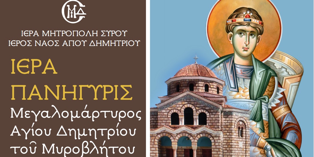 Ιερά Μητρόπολη Σύρου: Πρόσκληση προς τους πιστούς για τον εορτασμό του Αγίου Δημητρίου