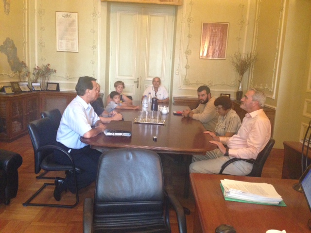 Tα μέλη της αντιπροσωπείας του Δήμου Μόρφου της Κύπρου, που βρίσκονται στη Σύρο, με την ευκαιρία των εγκαινίων της έκθεσης φωτογραφίας με θέμα «τη σύλ...