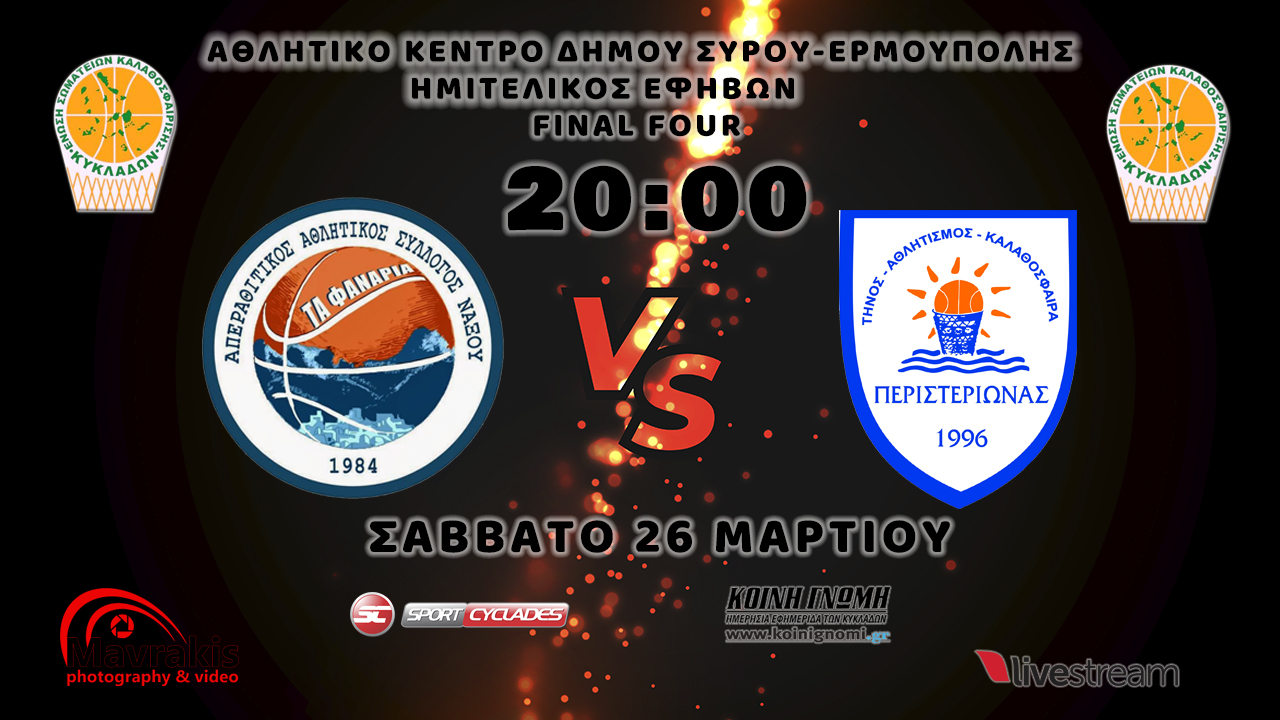Live Stream: ΑΠΑΣ Νάξου ''Τα Φανάρια'' - Περιστεριώνας Τήνου (Ημιτελικός Final - 4 Εφήβων ΕΣΚΚ)