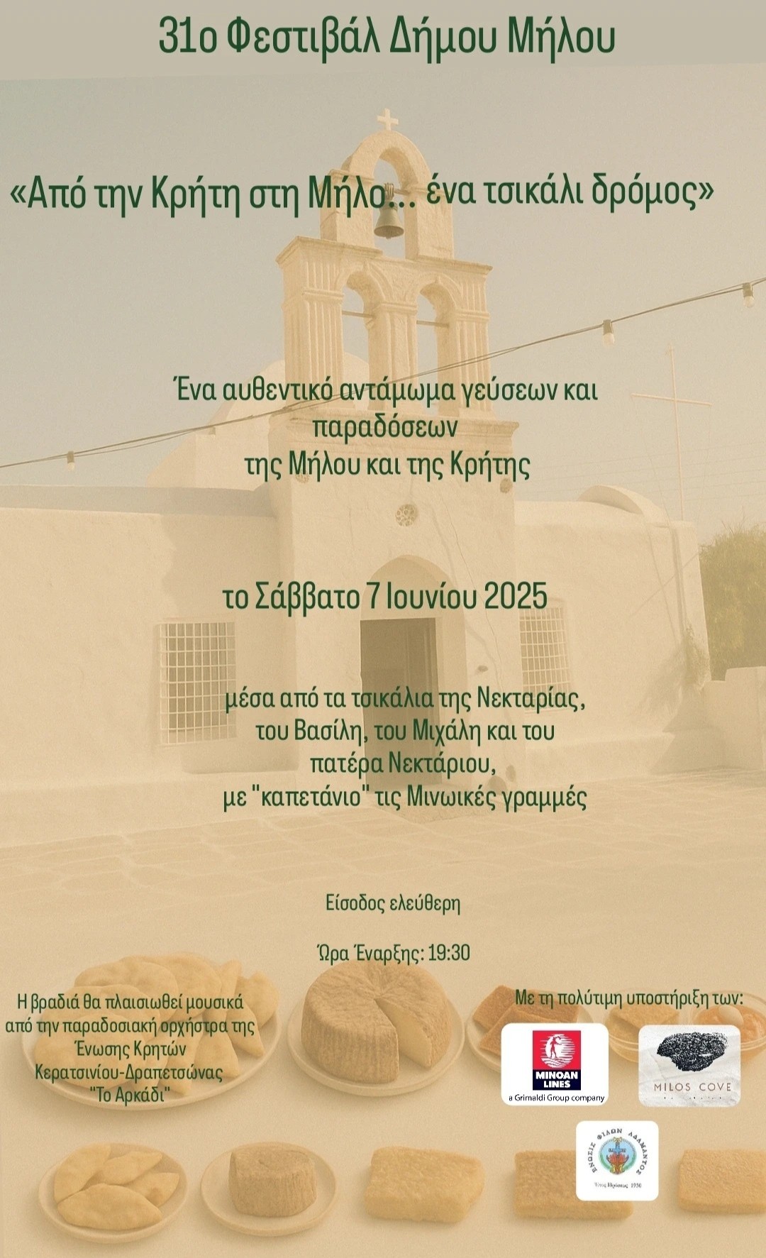 Ο Δήμος Μήλου, σε συνεργασία με την Ένωση Φίλων Αδάμαντα, στο πλαίσιο του 31ου Φεστιβάλ Μήλου και με στόχο την ανάδειξη της τοπικής γαστρονομίας και ...