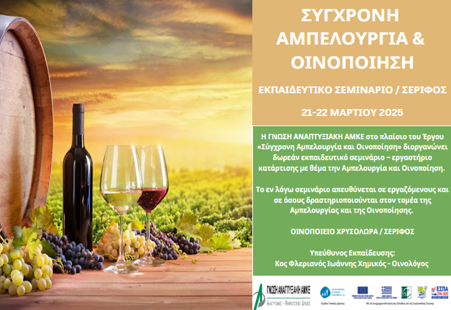 Ένα δωρεάν εκπαιδευτικό σεμινάριο που αναμένεται να προσφέρει πλούσια γνώση για την οινοποίηση και την αμπελουργία, διοργανώνει στη Σέριφο, το διήμερο...
