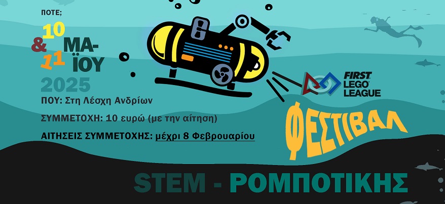 Η Λέσχη Ανδρίων σε συνεργασία με την Eduact, την O3 και την FIRST LEGO League σας προσκαλεί σε ένα φεστιβάλ ρομποτικής, με θέμα τον ωκεανό! FIRST ...