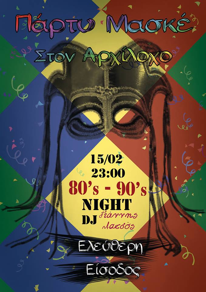 Ο Π.Σ "Αρχίλοχος διοργανώνει "ΜΑΣΚΕ ΠΑΡΤΥ" στην αίθουσα του στις 15/2 μετα τις 11 το βράδυ! Βάλτε οτι θέλετε και ελάτε να διασκεδάσουμε... μάλλον να ξ...