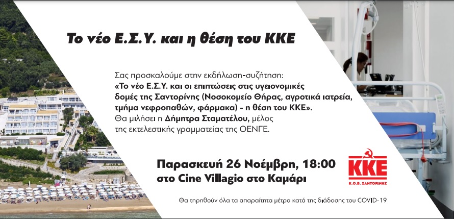 Εκδήλωση της Κομματικής Οργάνωσης του ΚΚΕ στη Σαντορίνη για το θέμα της Υγείας, την Παρασκευή 26 Νοεμβρίου. Λεπτομέρειες δείτε στην αφίσα.