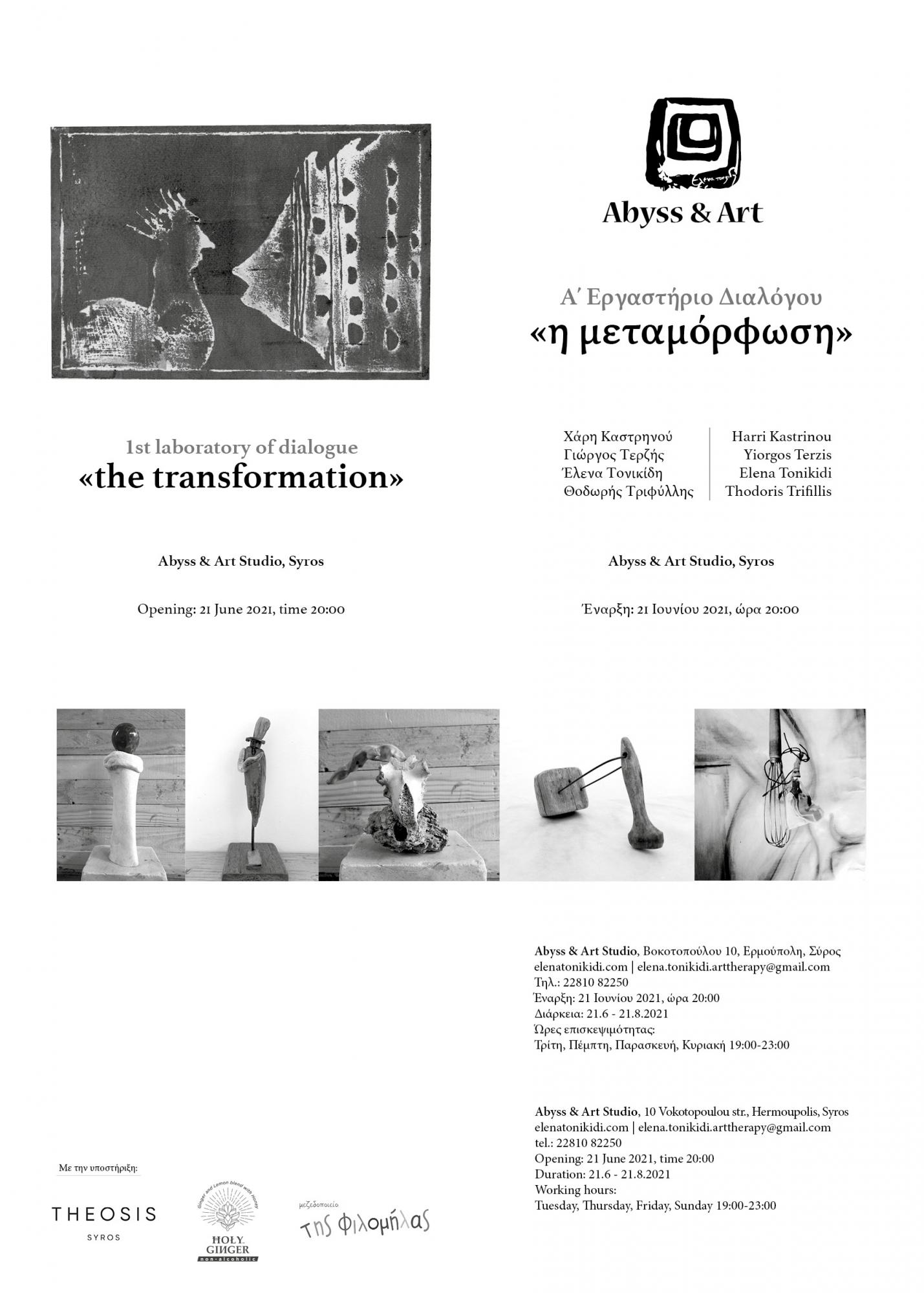 Το Abyss & Art studio στην Ερμπούπολη, παρουσιάζει τη Δευτέρα 21 Ιουνίου και ώρα 20:00 το A’ Εργαστήριο Διαλόγου “η μεταμόρφωση” . Εν μέσω καραντίν...