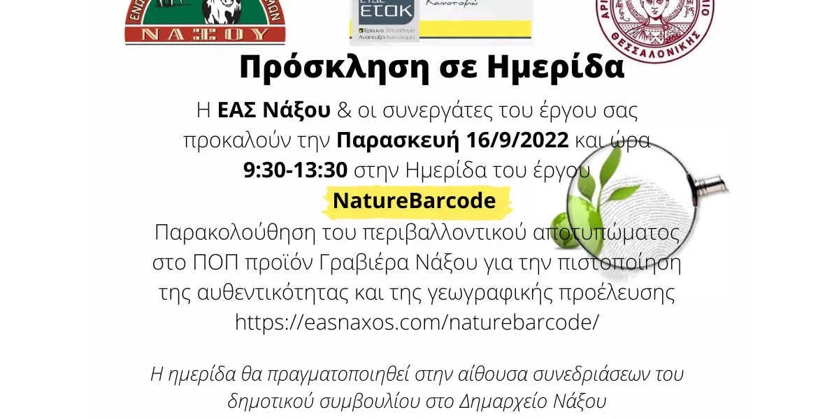 Η Ένωση Αγροτικών Συνεταιρισμών Νάξου σάς προσκαλεί στην ενημερωτική ημερίδα που διοργανώνει την Παρασκευή 16/9/2022 και ώρα 9:30 π.μ. στην αίθουσα συ...