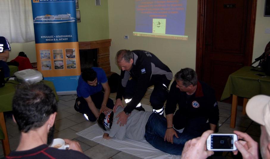 1ο SYROS Moto training μια εκδήλωση που τα είχε όλα, πρώτες βοήθειες ώστε να γνωρίζουμε κάποια πράγματα που μπορεί να μας σώσουν ή να σώσουμε εμείς μια ζωή, αυτό το κεφάλαιο περιελάμβανε κατάγματα, πεσμένο άντρα με κράνος από τροχαίο και φυσικά τεχνητή αναπνοή!