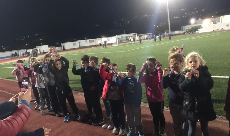 Οι μικροί αθλητές προπονούνται καθημερινά στο στάδιο του Κόρφου υπό τις οδηγίες του γυμναστή Κώστα Κουρατίδη.
