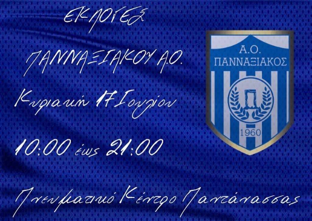 "Το Δ.Σ. του Πανναξιακού Α.Ο. ανακοινώνει τη διεξαγωγή εκλογών για την ανάδειξη του νέου Διοικητικού Συμβουλίου, την Κυριακή 17 Ιουλίου 2022 στο Πνευματικό Κέντρο της Παντάνασσας.