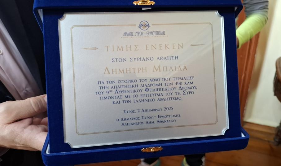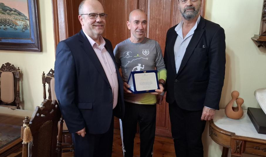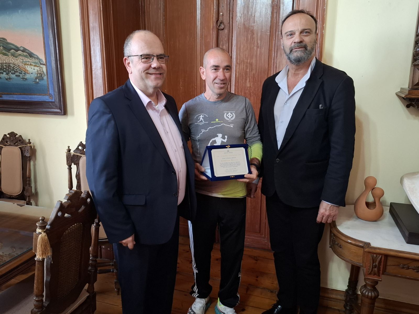 Τον Συριανό αθλητή Δημήτρη Μπάιλα, ο οποίος πριν από λίγες ημέρες κατάφερε να φτάσει μέχρι το τέλος της διαδρομής στον αυθεντικό Φειδιππίδειο δρόμο, τίμησε την Πέμπτη ο Δήμος Σύρου – Ερμουπολης.