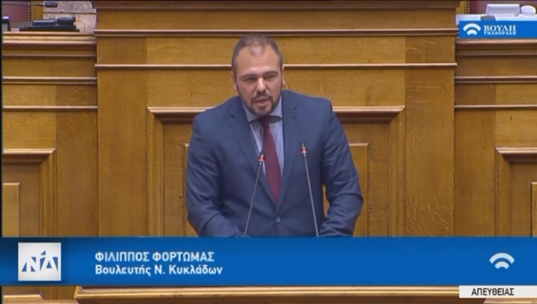 Στην ανάγκη εφαρμογής οριζόντιας νησιωτικής πολιτικής στην Ελλάδα επικεντρώθηκε ο Βουλευτής Κυκλάδων της Νέας Δημοκρατίας, Φίλιππος Φόρτωμας μιλώντας από το βήμα της Ολομέλειας της Βουλής το βράδυ της Παρασκευής, κατά τη συζήτηση για την Αναθεώρηση του Συντάγματος.